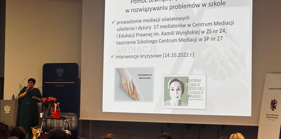 Szczególnie miło było usłyszeć o naszym Centrum Mediacji i Edukacji Prawnej im. Kamili Wyrebskiej przy ZS nr 24 w Bydgoszczy.